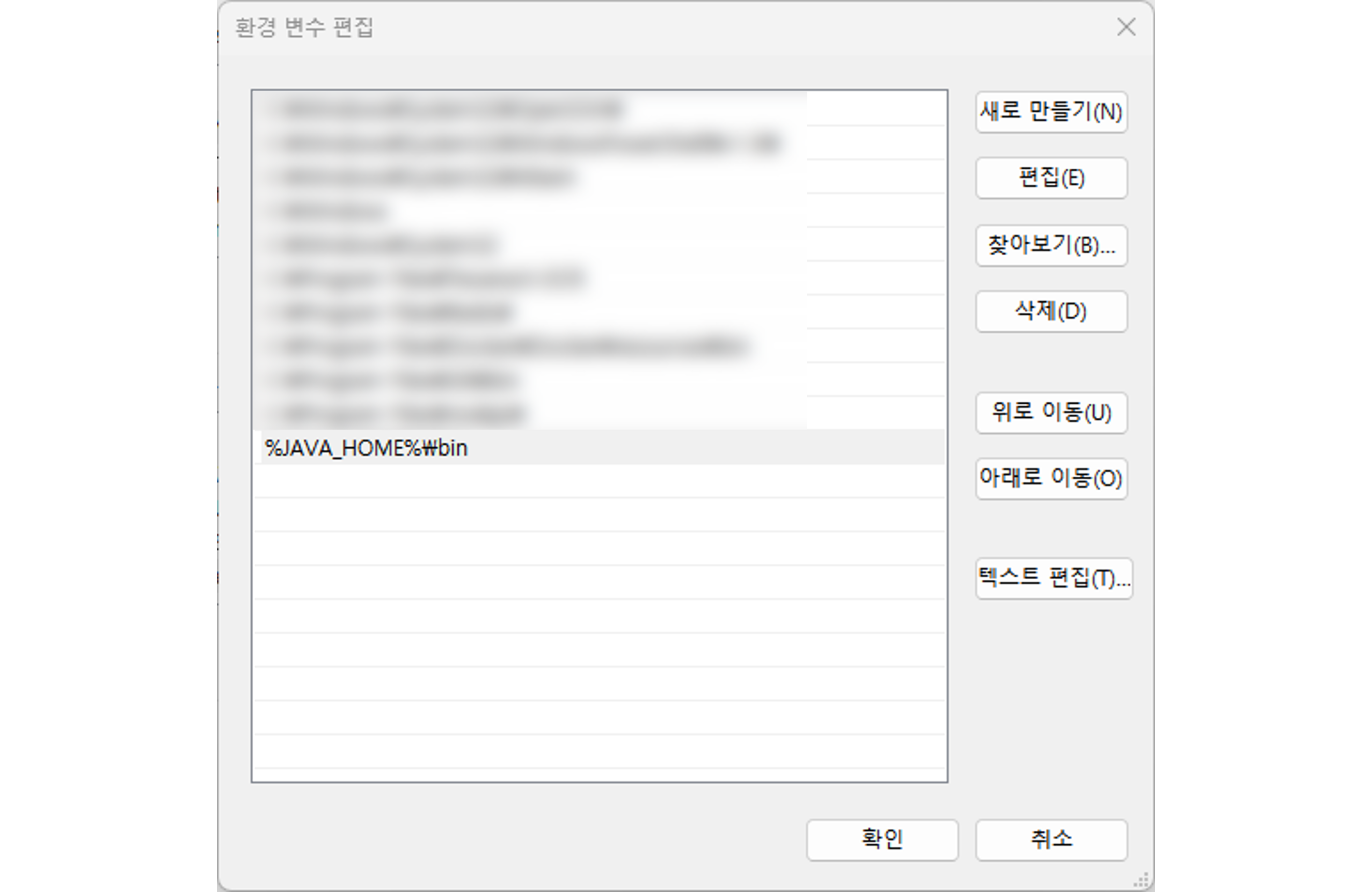 %JAVA_HOME%\bin으로 입력하면, 나중에 JDK 버전을 변경할 때 JAVA_HOME 값만 바꾸면 PATH도 자동으로 반영된다.설치 및 환경변수 최종 검증