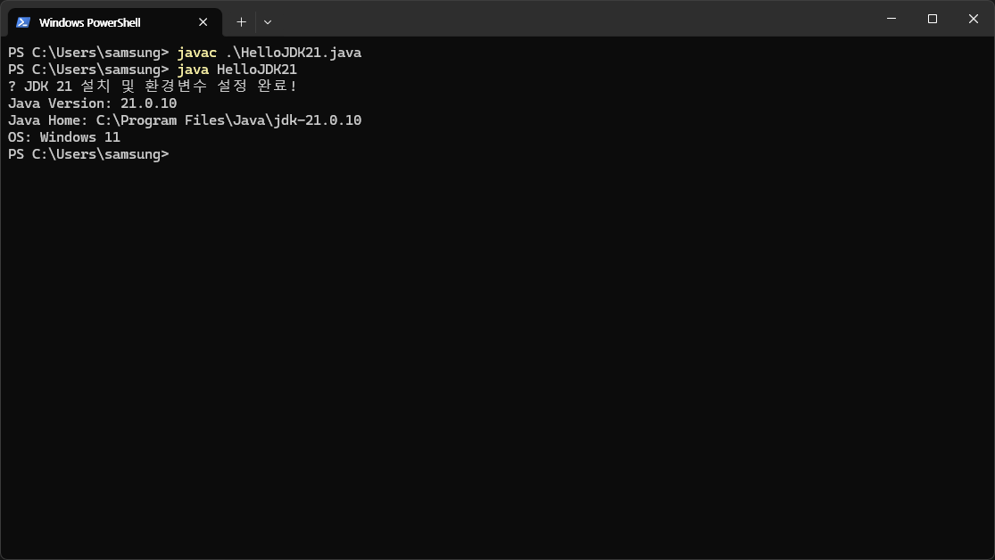 java HelloJDK21.java로 컴파일 없이 바로 실행도 가능하다. 간단한 테스트 시 유용하다.자주 발생하는 문제와 해결